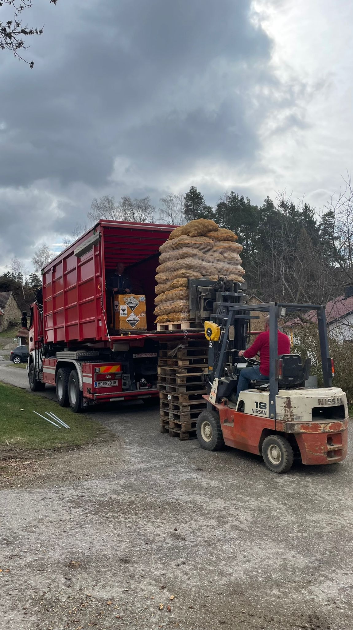 Vergangene Woche unterstützte die Freiwillige Feuerwehr Perchtoldsdorf im Rahmen des Katastrophenhilfsdienstes bei Hilfstransporten für die Ukraine. HLM Christian Lang und LM Anton Nigl waren mit dem Wechselladefahrzeug unterwegs um 22 Tonnen Kartoffeln von Bauern aus Niederösterreich zu sammelm und zu einer Verladestelle zu bringen. Von dieser werden die Kartoffeln weitertransportiert.