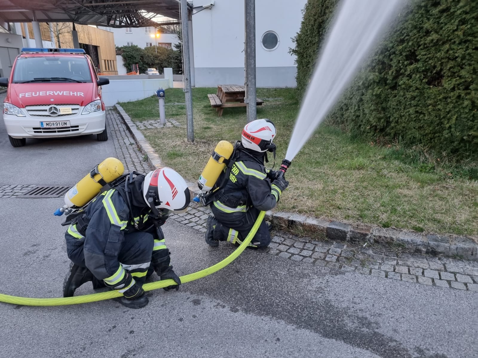 Zudem wurde ein Personensuche im Keller des Feuerwehrhauses, sowie die richtige Handhabung einer Löschleitung erneut beübt.